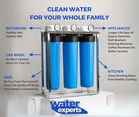 🔵 Combat the water crisis: Take control of your water quality with our whole-house filtration solution.